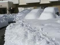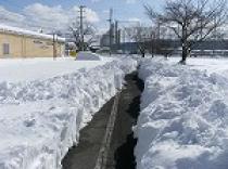 雪かきしようにも、人力では手がつけられないレベルの職員駐車場、積雪約80cm前後。